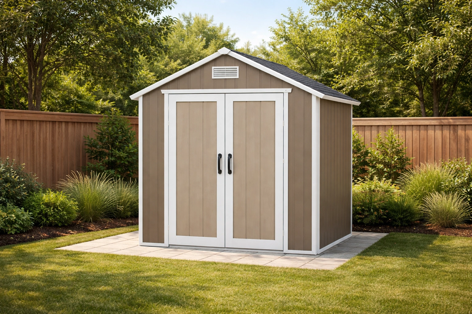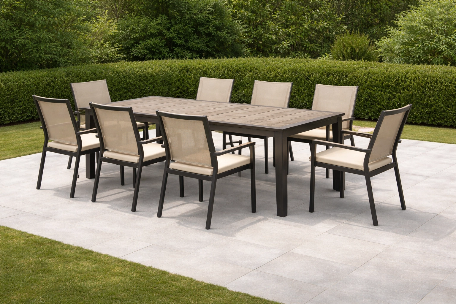 Conjunto de mesa y sillas de aluminio beige con 8 sillas